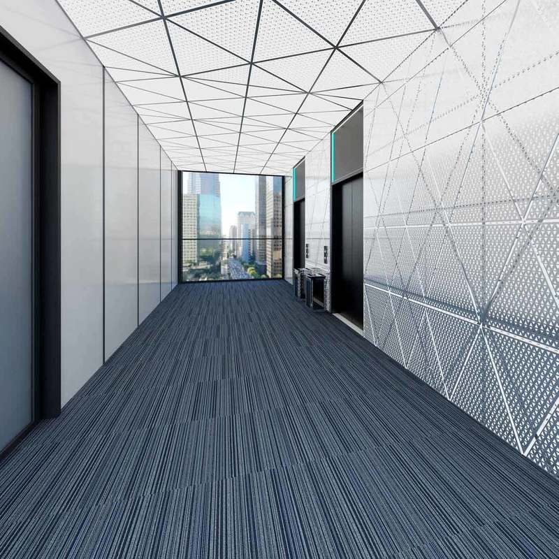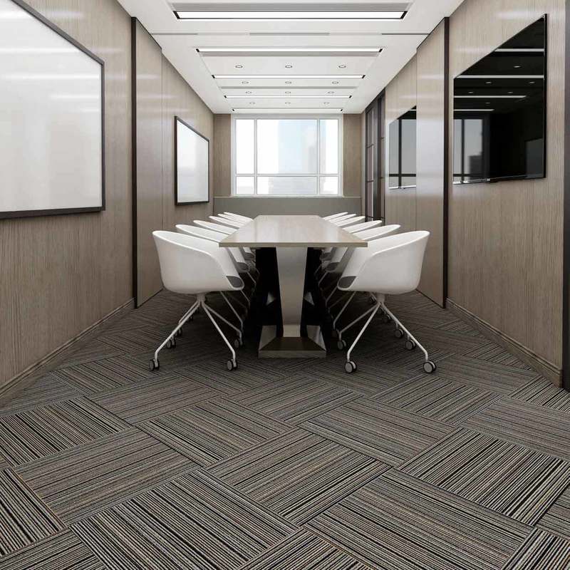 Polypropylene Carpet for Open-Plan Offices, with modular design for easy area division and maintenance, features remarkable sound absorption, creating a private and efficient working atmosphere for open-plan office spaces. |