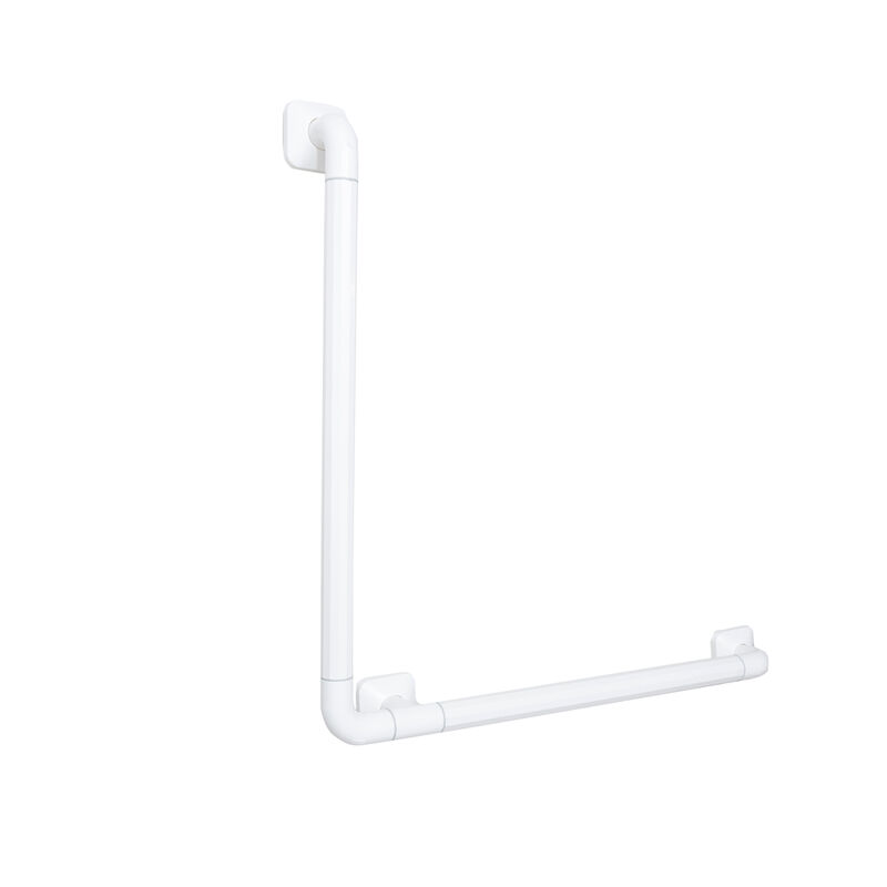 L-Shaped White Nylon Wall Mounted Grab Bar - Non-slip, 150kg load capacity, waterproof. Ideal safety handrail for bathroom, toilet, shower, elderly, disabled, hospitals and nursing homes.